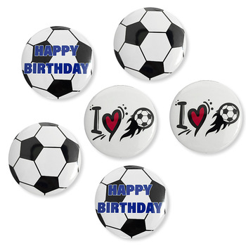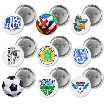Insignia de alfileres de fútbol en blanco personalizada al por mayor, regalos promocionales, insignia de alfiler redondo de fiesta de fútbol de recuerdo, insignia de alfiler de hojalata de Metal