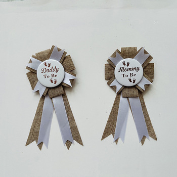 Insignia de PIN en blanco personalizada al por mayor, regalos promocionales, insignia de PIN redondo para papá y mamá, juego de insignias de cintas de lino y hojalata de metal