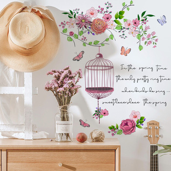 Pegatinas de pared personalizadas al por mayor regalo promocional jaula de PVC flor floral mariposas pegatina decorativa de pared para dormitorio