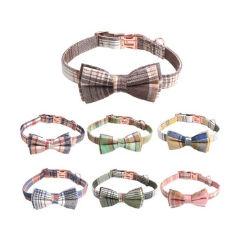 Venta al por mayor de Collar de gato a cuadros Vintage de moda Collar de gato seguro de lujo pajarita Collar de gato con campana