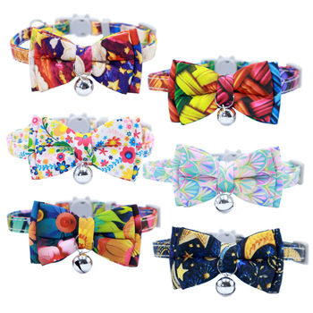 Venta al por mayor de collar de gato personalizado de lujo de tela impermeable 3D impreso Breakaway pequeña pajarita mascota gato perro Collar con campana