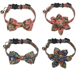 थोक कस्टम पालतू बिल्ली कॉलर फैशन लक्जरी सुरक्षा छोटे ब्रेकआउट पुष्प धनुष टाई पालतू बिल्ली कॉलर