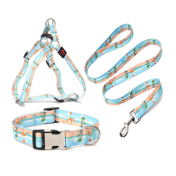 Wholesale Custom Pet Dog Harness Summer Beach Hawaiian Luxury Medium Small Pet Dog Collar and Leash and Harness Set