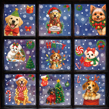 High Quality Custom Window Stickers PVC Removable Cartoon Cute Dog Decorative Christmas Electrostatic Adsorption Window Stickers