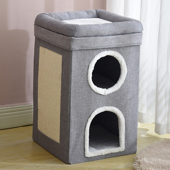 カスタムペット製品猫洞窟ベッドスクラッチャー高級二層折りたたみ洗える猫洞窟ベッドハウス屋内