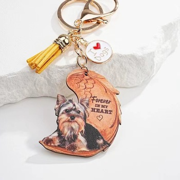 พวงกุญแจสุนัขทำจากไม้มีพู่พวงกุญแจของขวัญส่งเสริมการขายพวงกุญแจสุดหรู